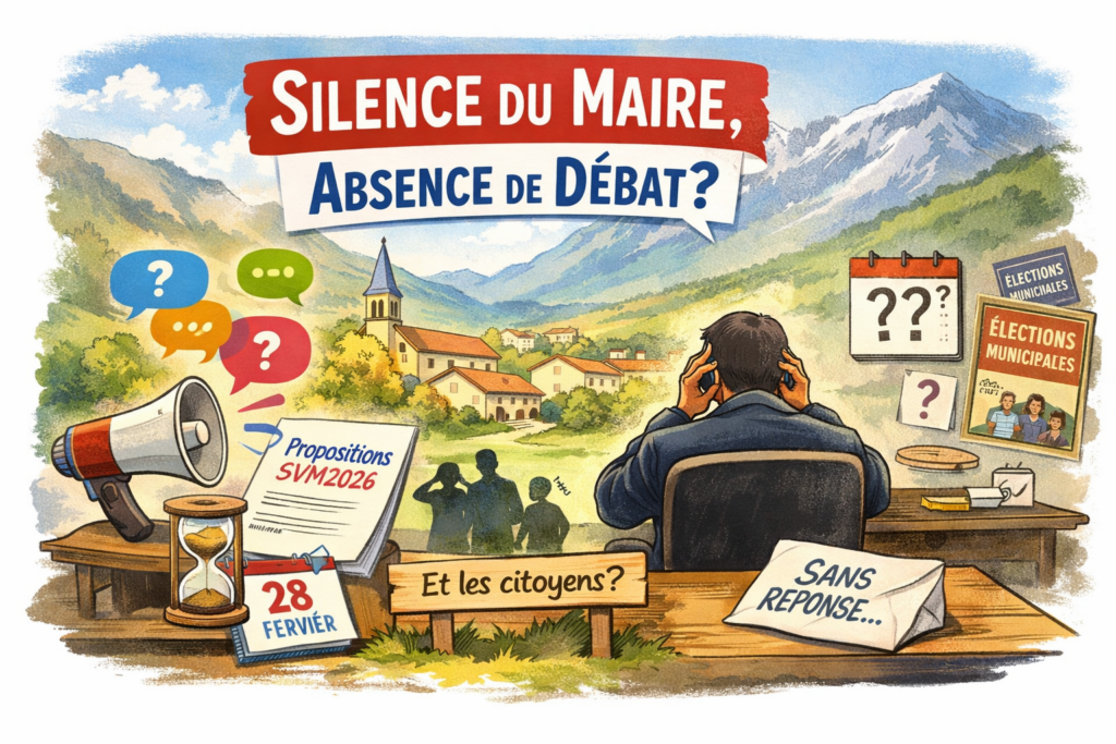 Le maire sortant — en poste depuis prĂšs de trente ans — n’a Ă  ce jour ni exposĂ© publiquement ses intentions, ni rĂ©pondu aux propositions citoyennes qui lui ont Ă©tĂ© adressĂ©es.